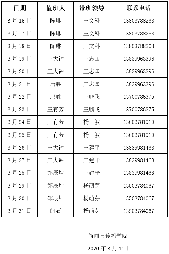 4.根据学校安排,如需后续安排值班另行通知